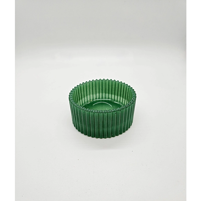 Green rippled succulent planter made of resin. 3 inches in width and 1 and 1/2 inches deep.
